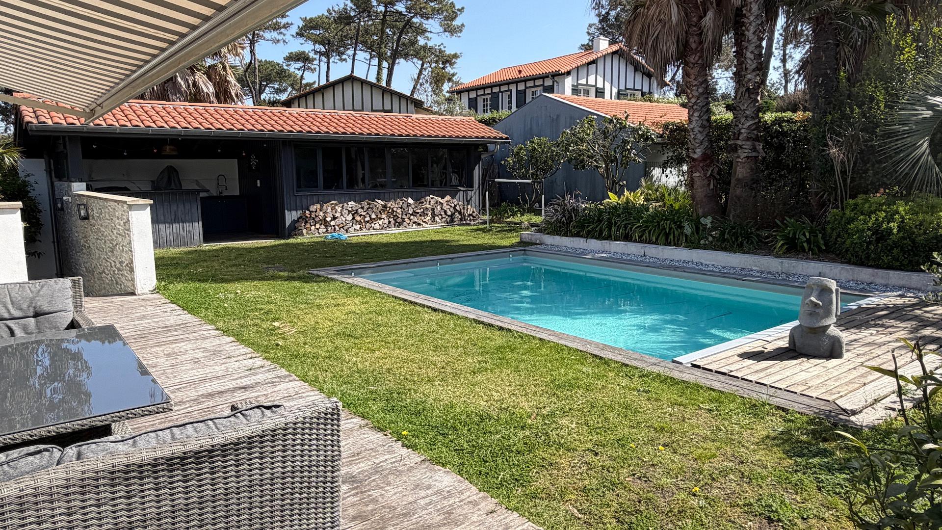 In a quiet area of the pine forest of Chiberta, contemporary house of 185m2 with heated pool and 4 bedrooms.