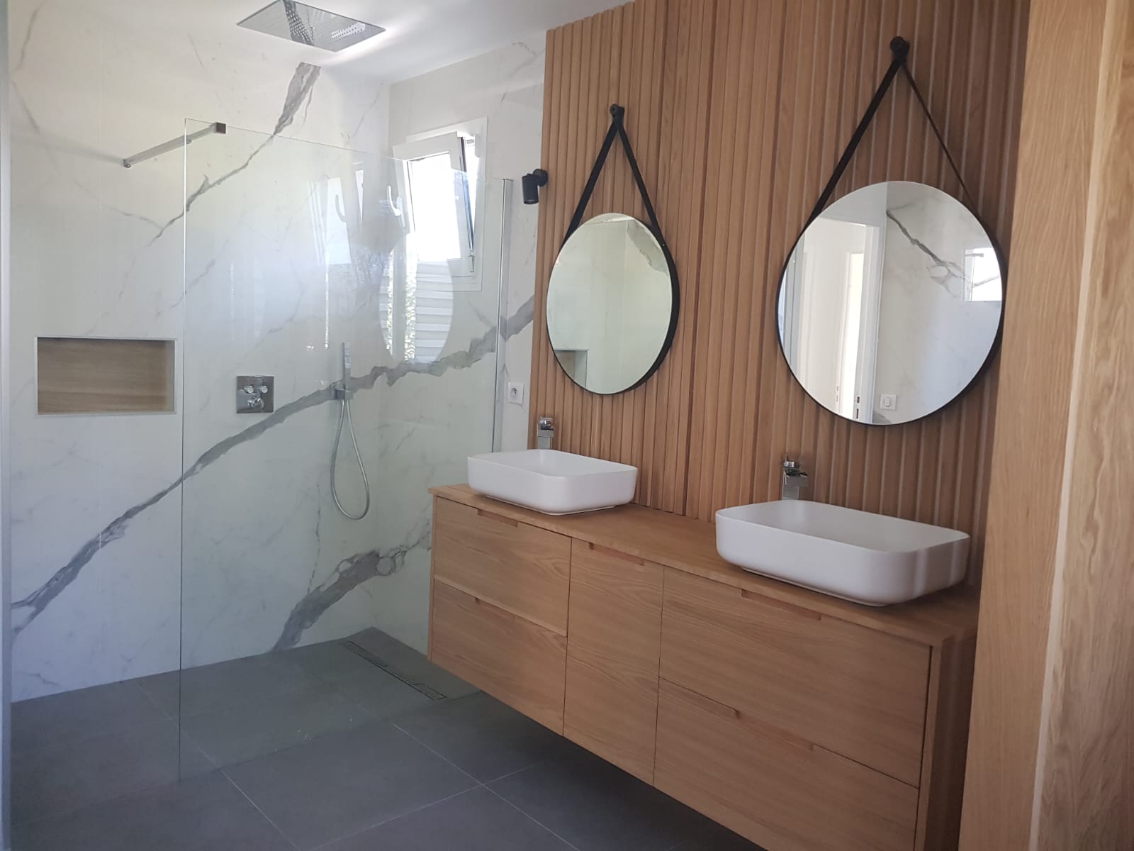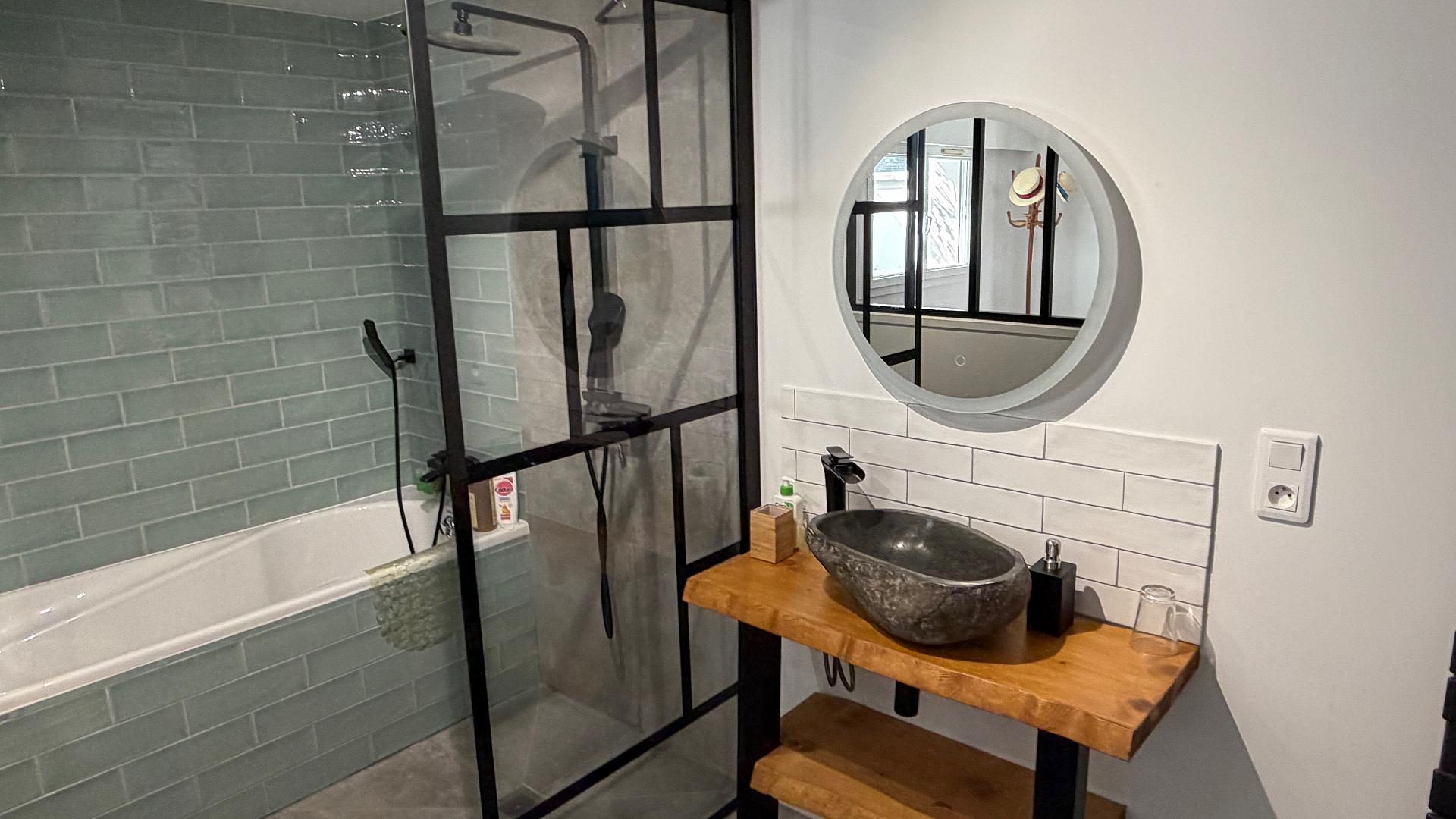 2 bedrooms with double bed 140 each with its own bathroom (shower + wc)