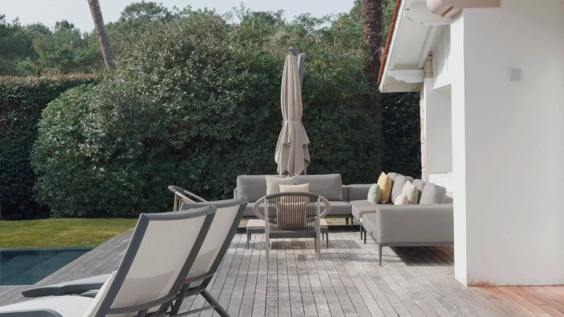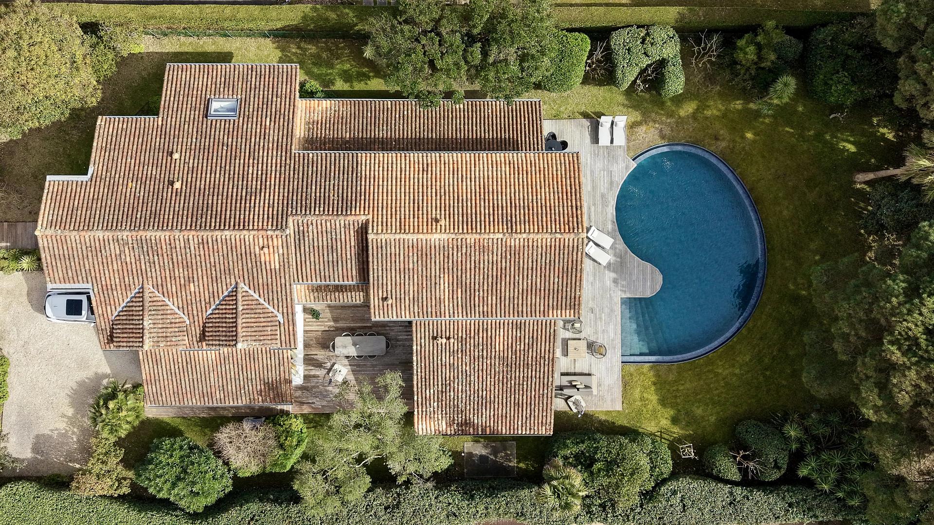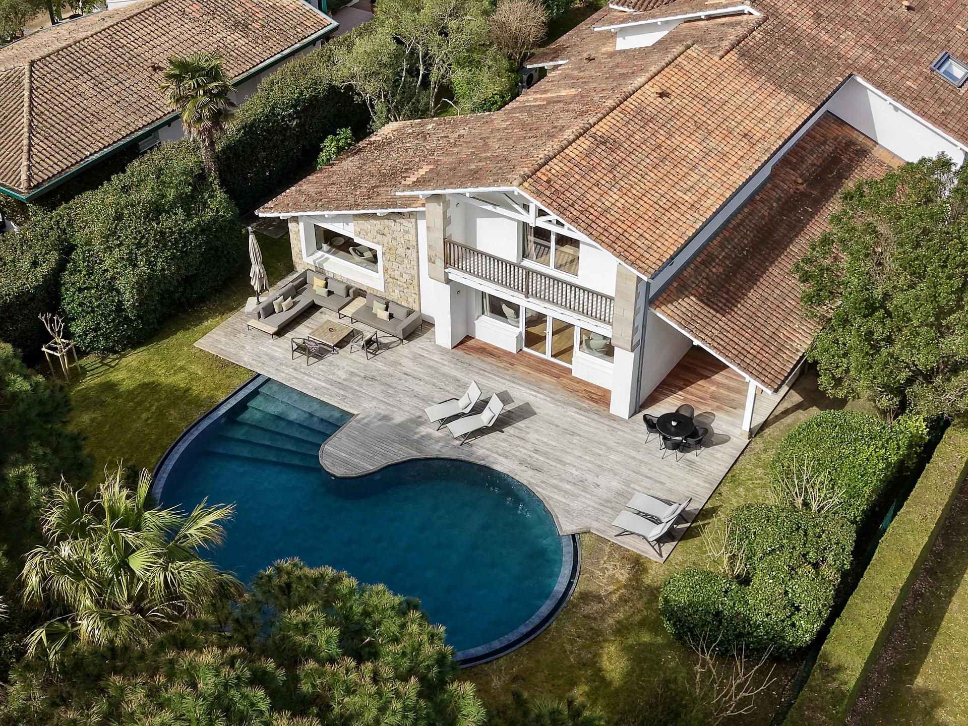 A magnificent villa entirely renovated in 2022 with quality materials, located in Chiberta, a sought-after district of Anglet. It offers 310 m² of living space, set in 1,490 m² of grounds, a veritable showcase of greenery.