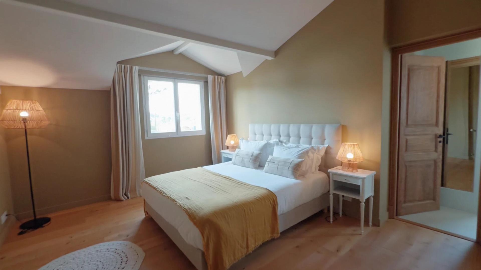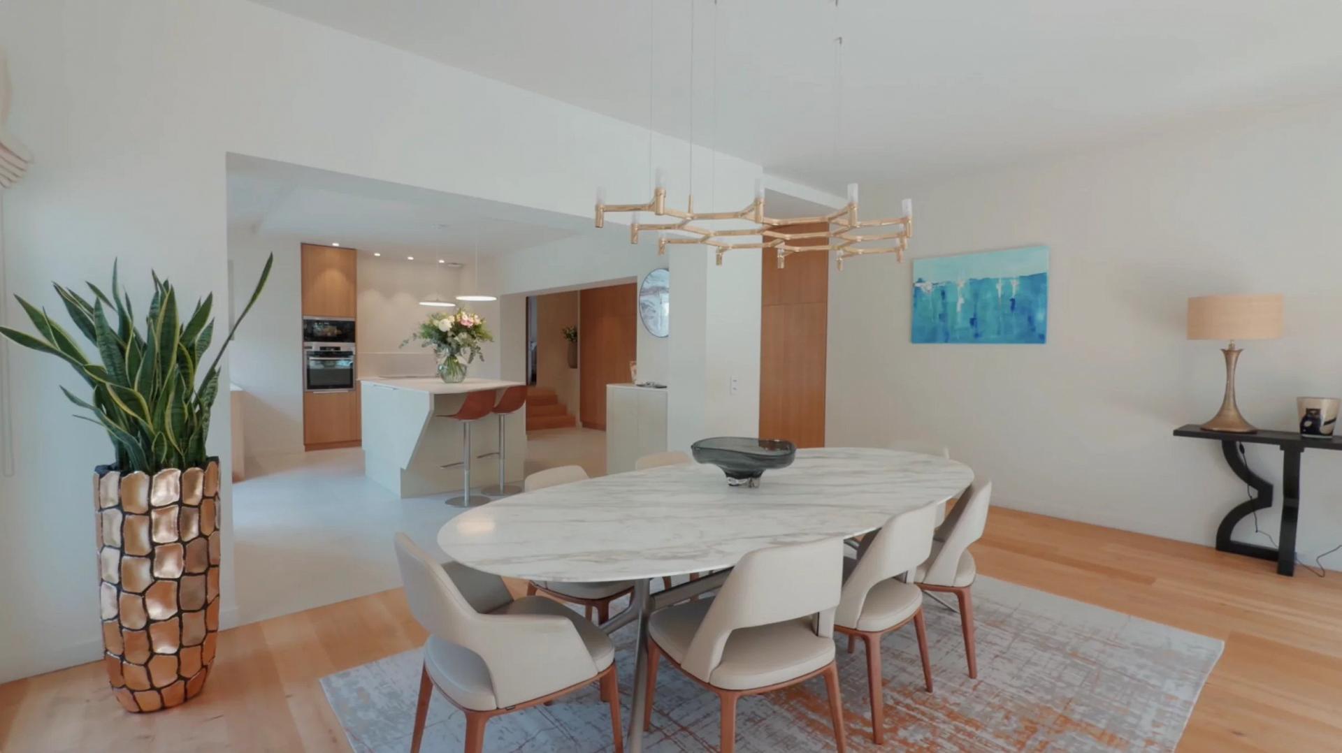– A large entrance hall opens onto the double-exposed living room. The dining area and kitchen benefit from a first terrace and outdoor dining area. The living area opens onto the second terrace, the garden and the pool.