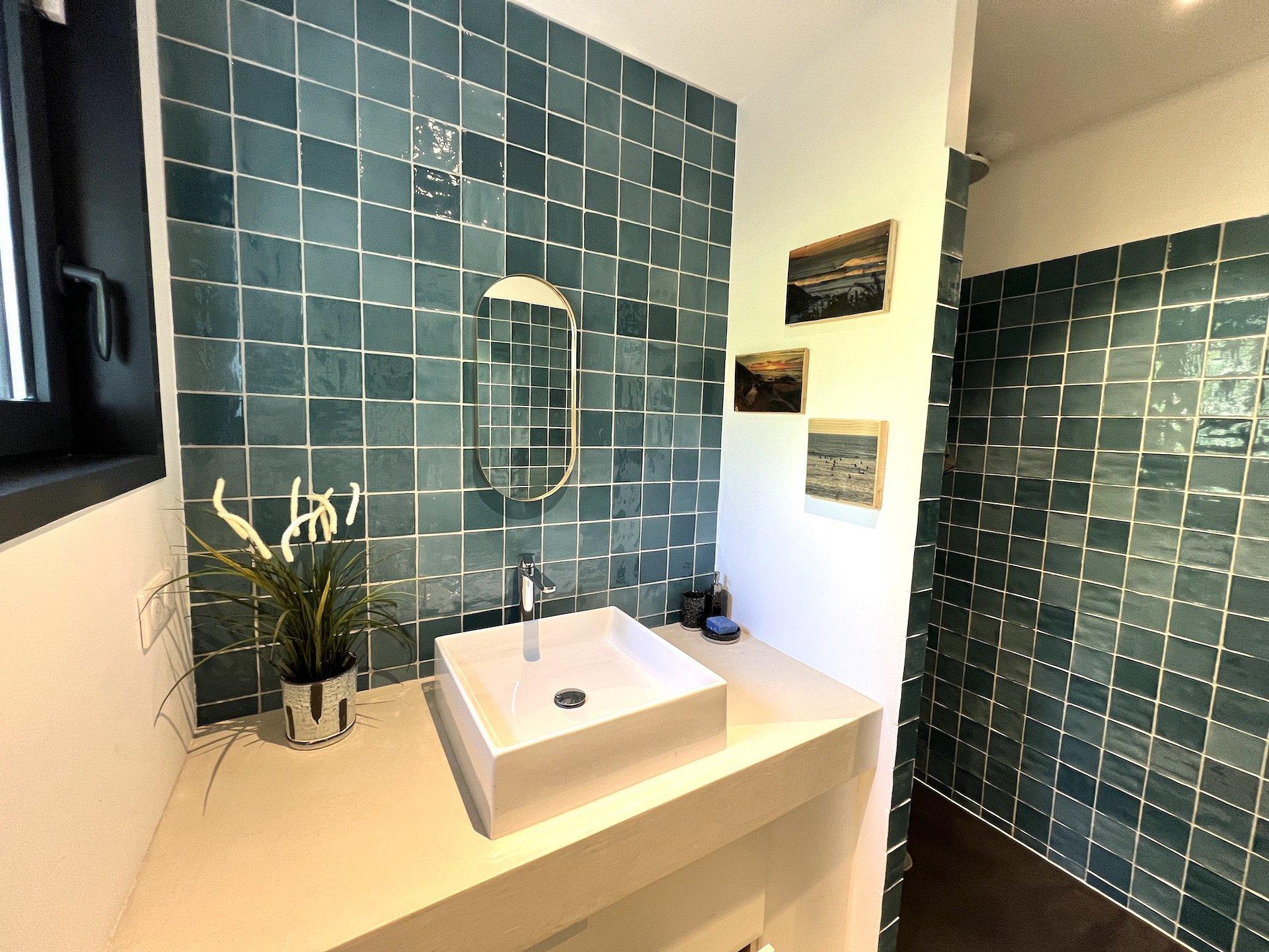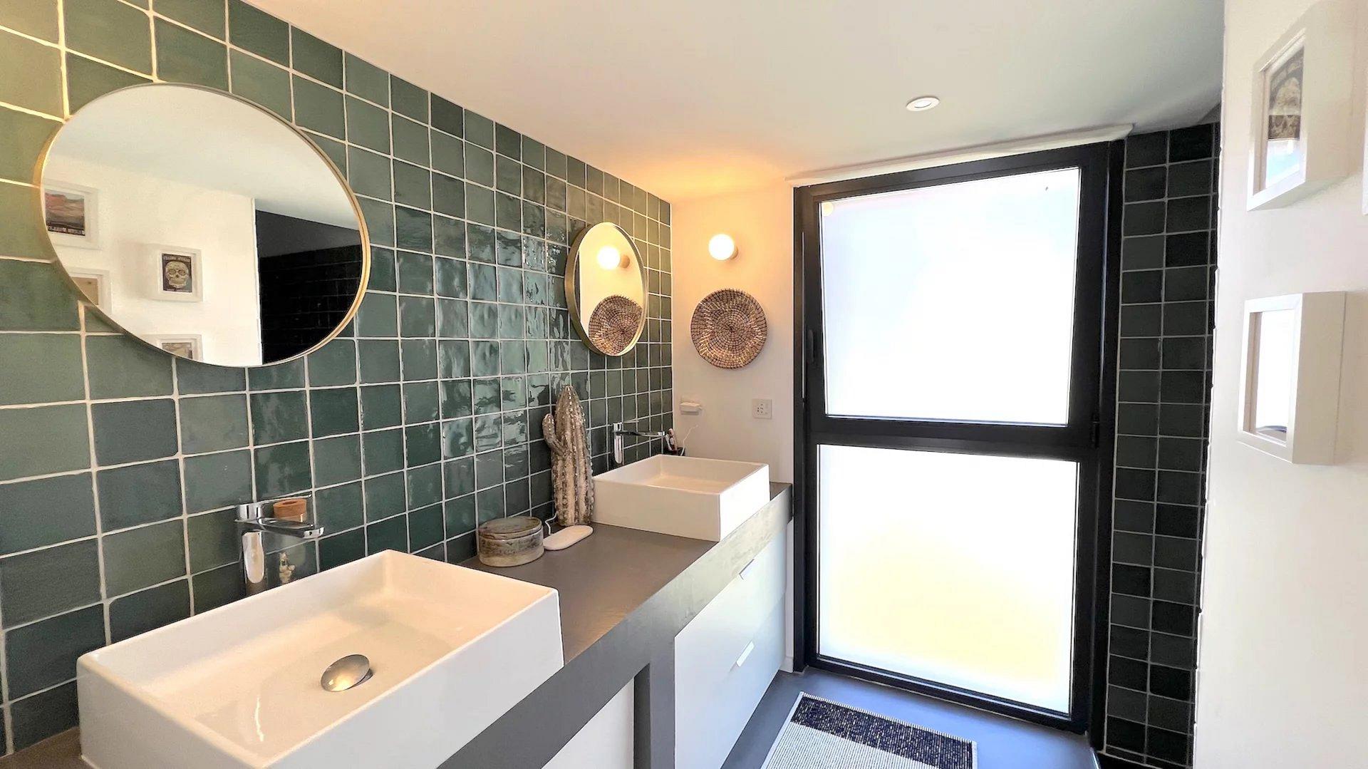 On the ground floor a guest room with bathroom and guest toilet. Upstairs two rooms connected by a common bathroom, and a superb master suite with dressing room, shower room and office space. All rooms open onto private terraces, with views of the mountains.