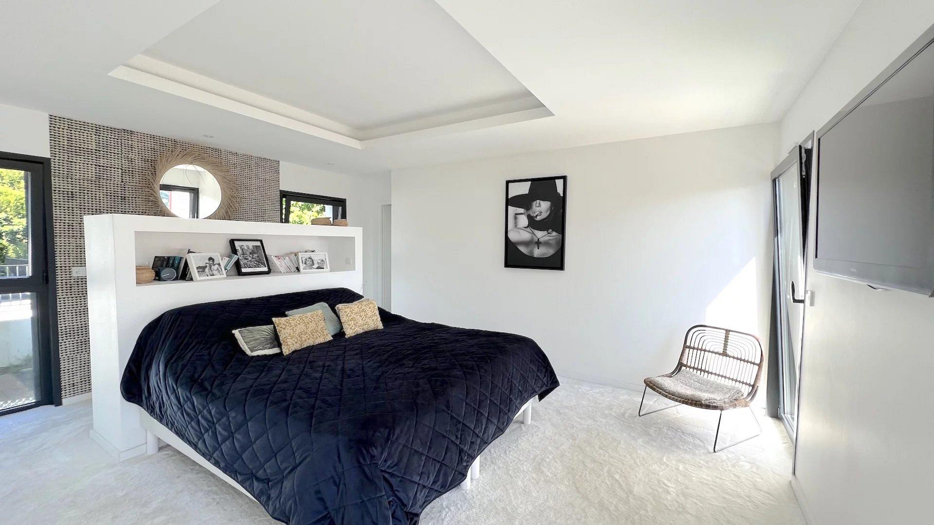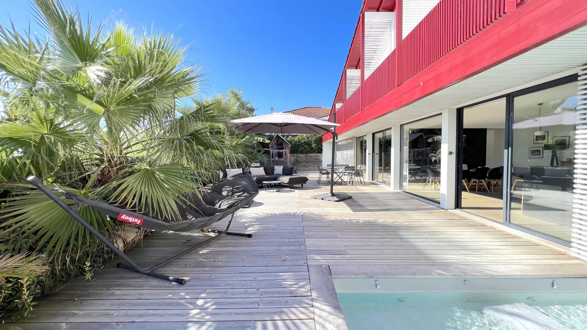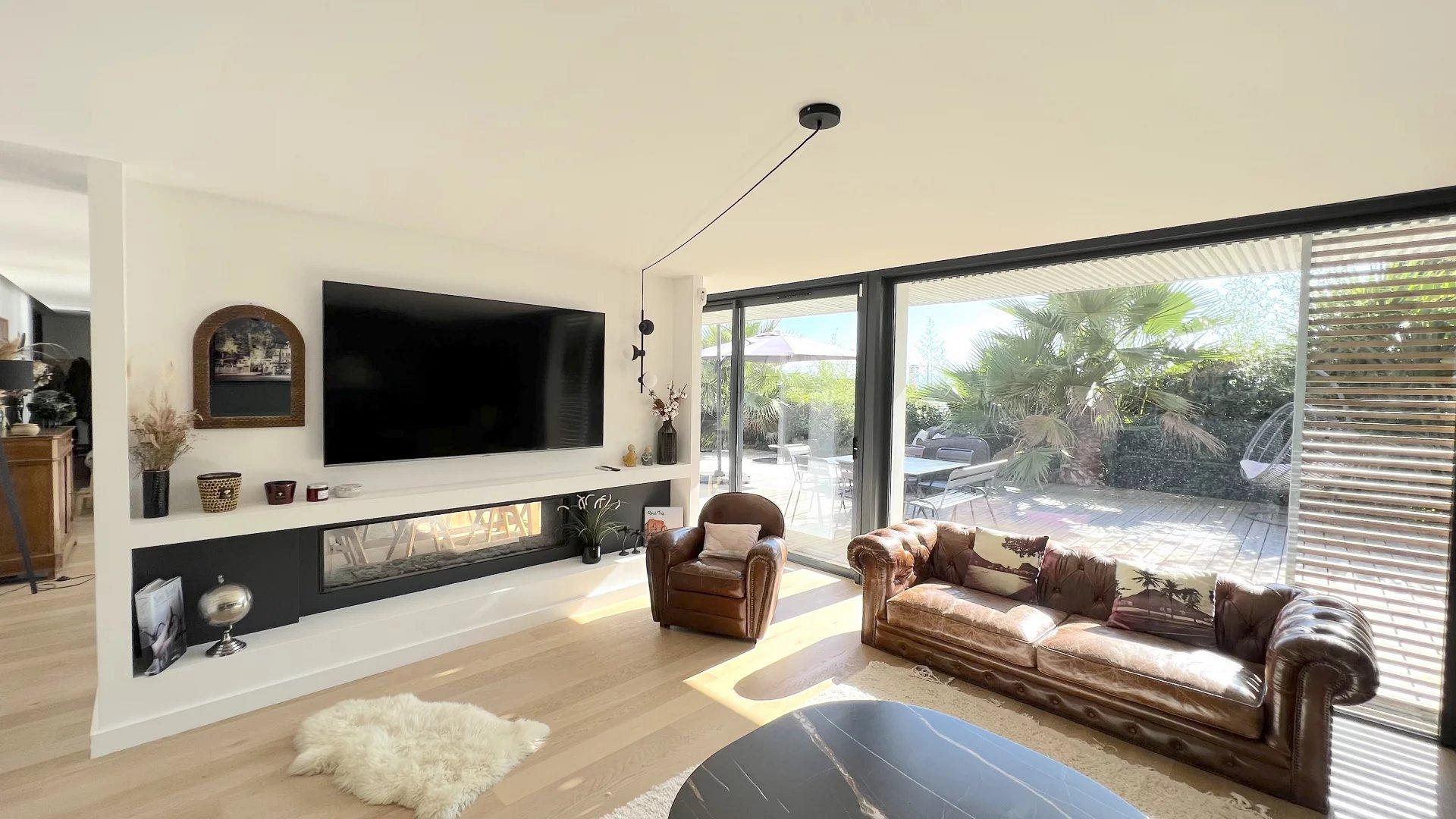 Its singular architecture makes it a unique property in the sector, it is completely oriented towards the South, offering exceptional brightness in all rooms. It consists of an entrance on a living room with open kitchen of 70m2, a large gas fireplace separates the living space from the dining room. All living rooms open onto the landscaped terrace and pool. Garden of about 700m2.
