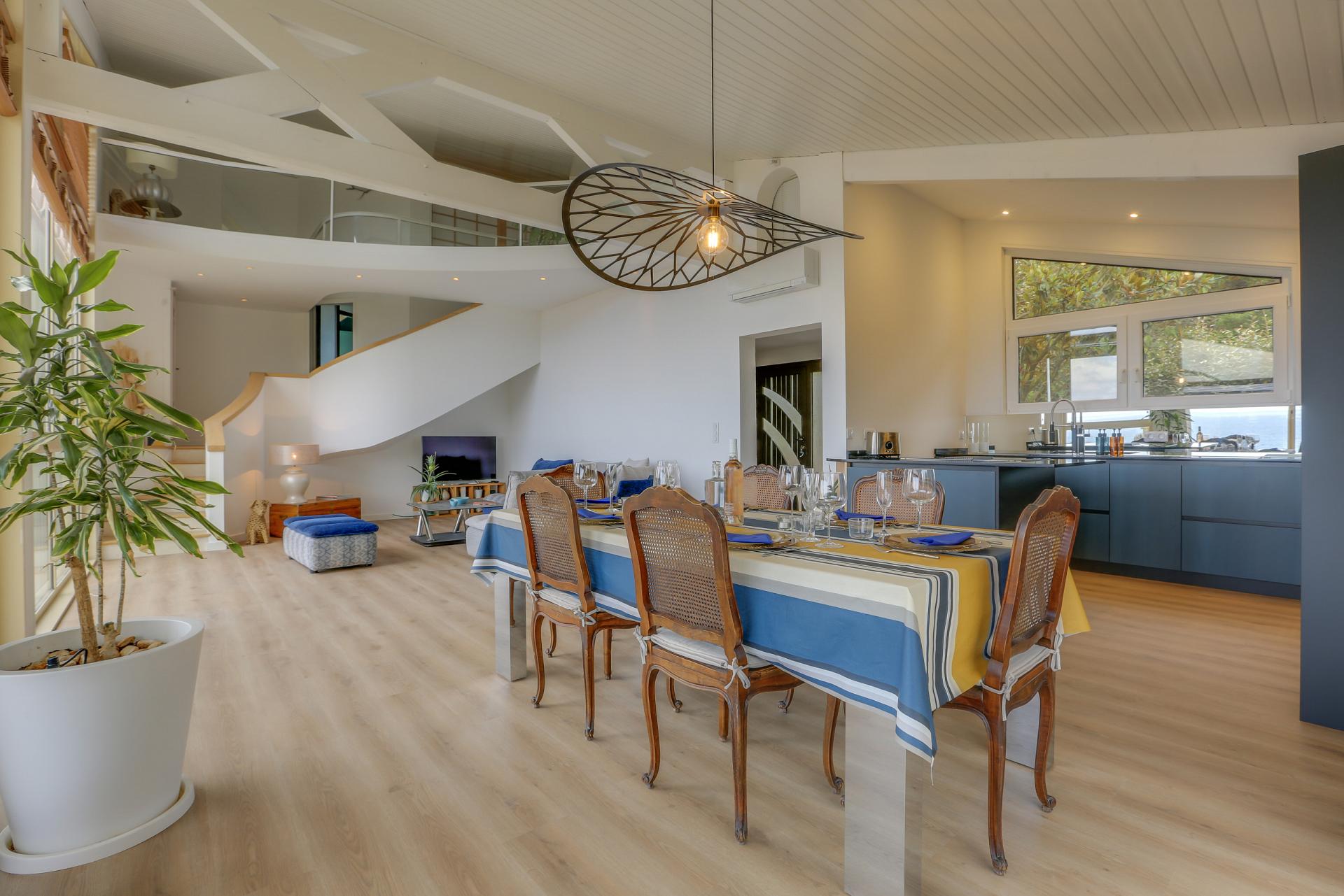 Cet appartement d’une superficie de 140M2, entièrement rénové en 2023, offre une vue panoramique sur la mer. Situation idéale pour vos vacances à moins de 5 minutes à pied de la plage » La Milady », du centre de thalassothérapie et du golf. Un balcon, un coin repas ombragé dans le jardinet et un emplacement de parking devant l’immeuble font partis des prestations.