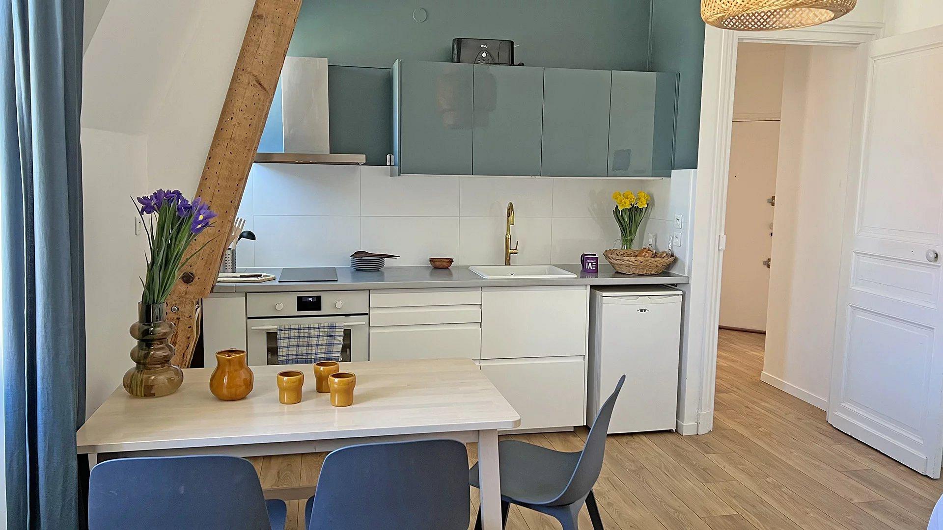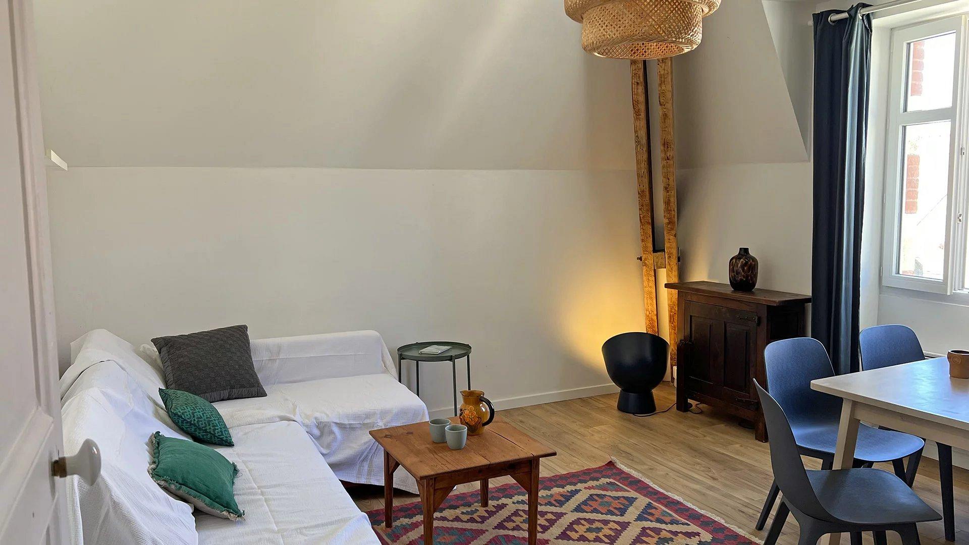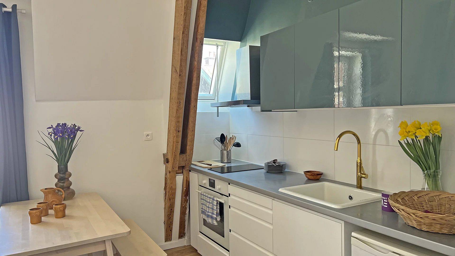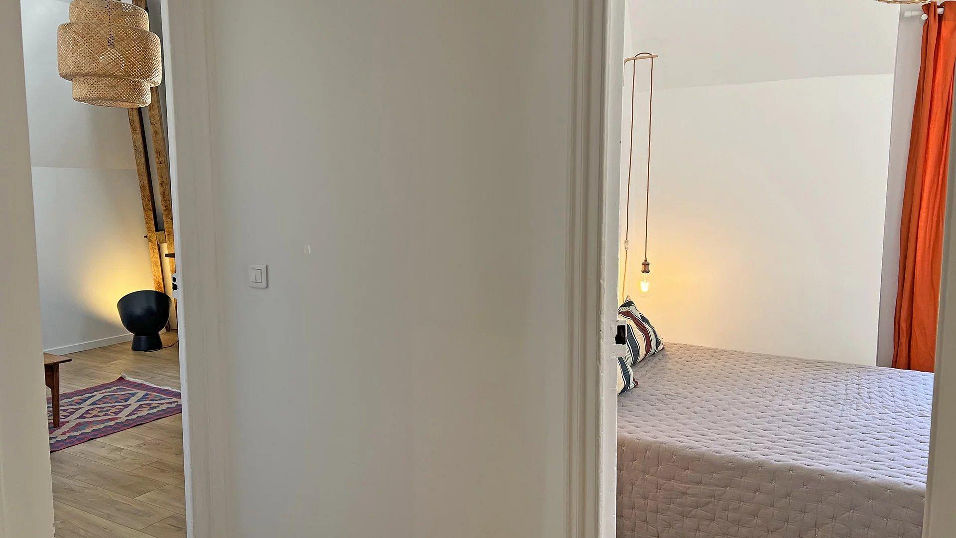 Appt de type T2 cosi avec ses poutres apparentes, entièrement renové au 2 ème et dernier étage d’une maison bourgeoise.