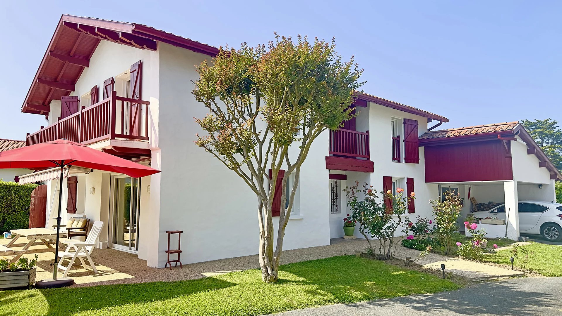 pour cette Jolie villa de style basque de 210 m2 posée sur une parcelle de terrain plat et arboré d’une surface de 1 000 m2.