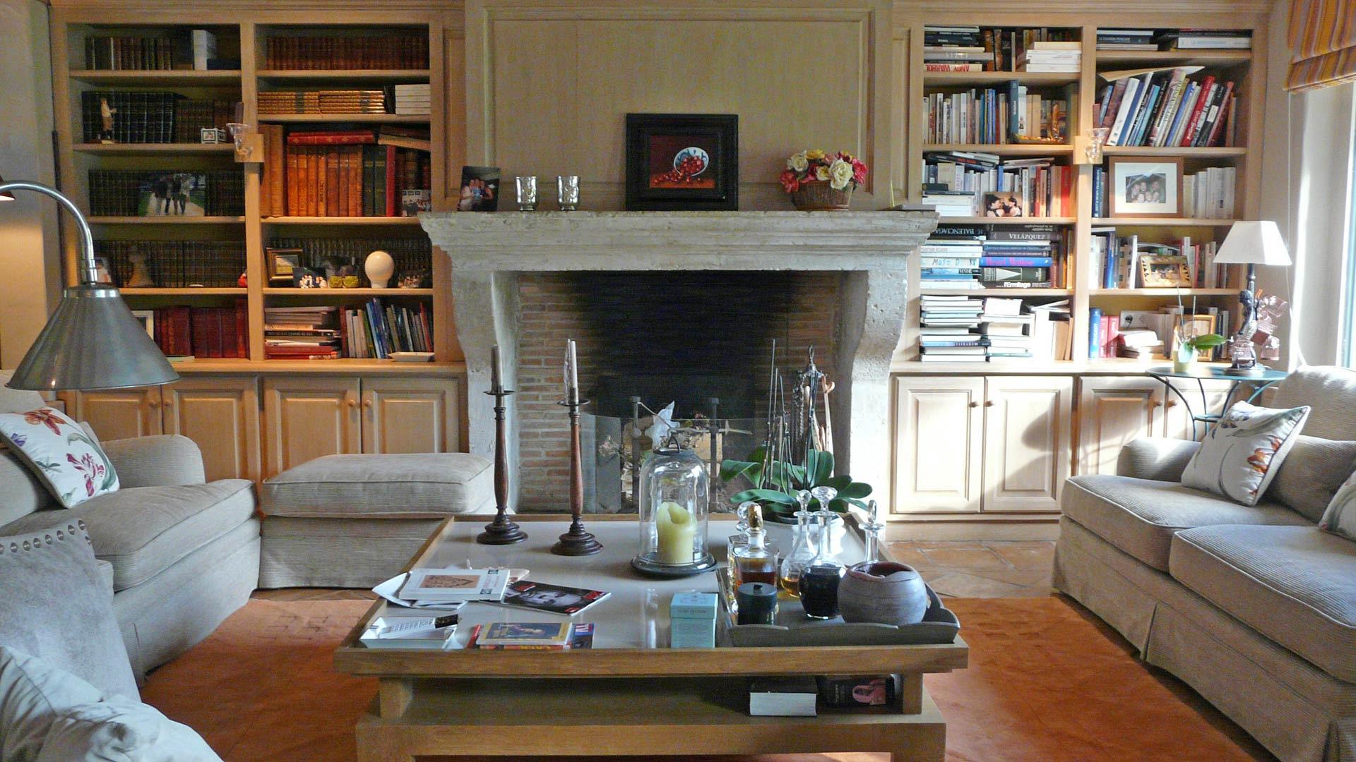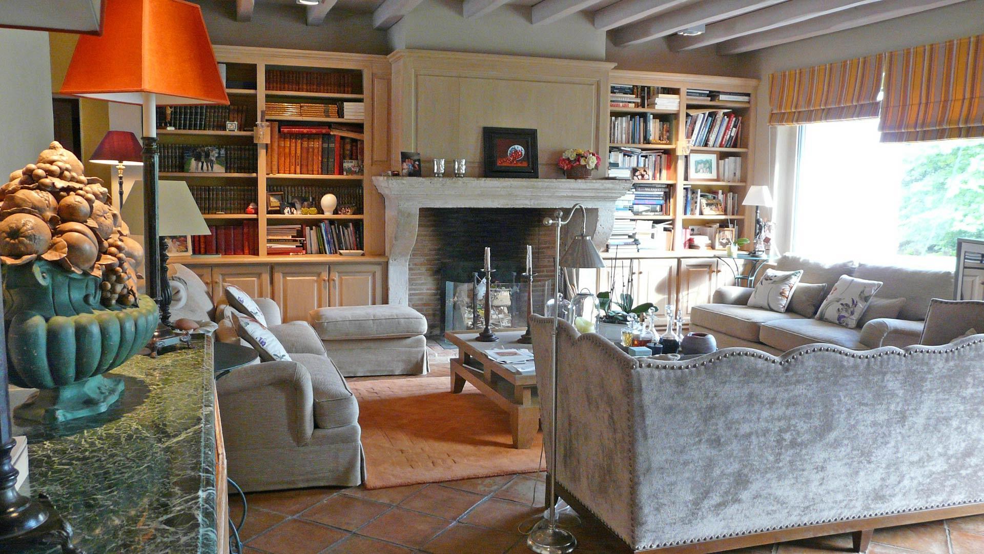 Le grand séjour lumineux, agrémenté d’une cheminée, s’ouvre largement sur la terrasse et le jardin, créant une belle continuité entre intérieur et extérieur.
