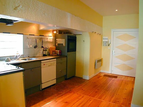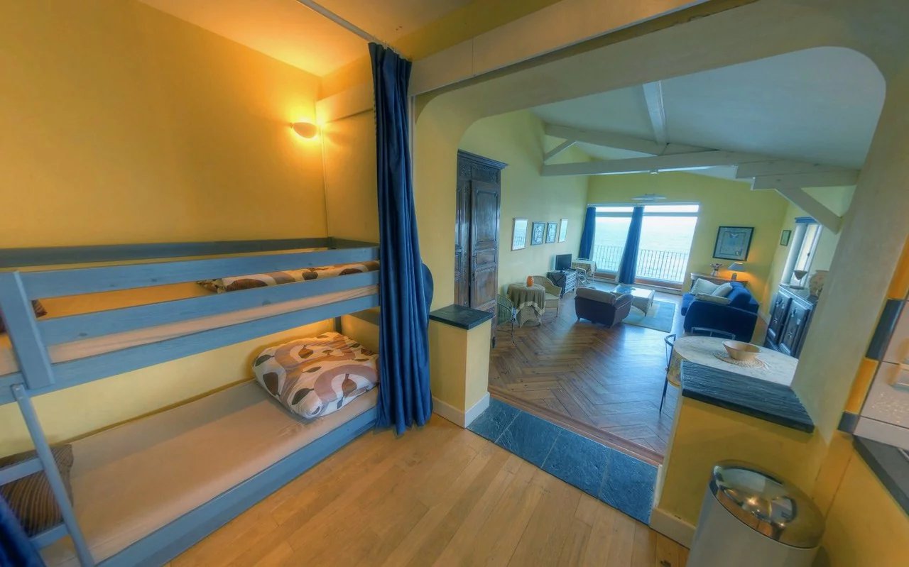 L’appartement propose un bel espace de vie baigné de lumière avec cuisine ouverte, une salle d’eau avec toilettes ainsi qu’un coin nuit aménagé avec deux couchages superposés.