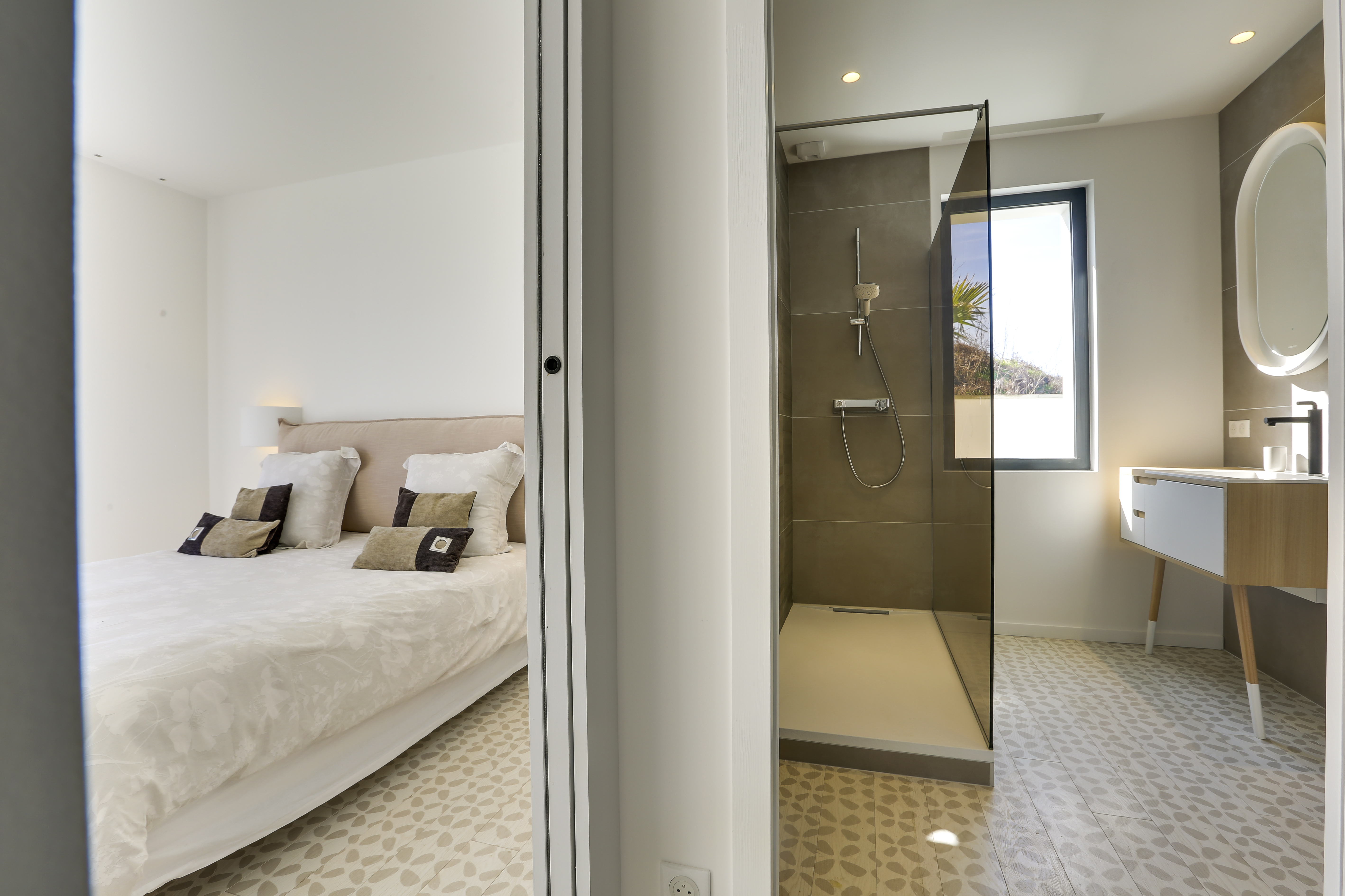 Les deux chambres en Rez-de-chaussée détiennent un accès à la terrasse et sont exposées sud/ouest. Celles-ci sont composées d’un lit en 180 et d’un lit en 160, avec chacune sa propre salle d’eau et son wc.