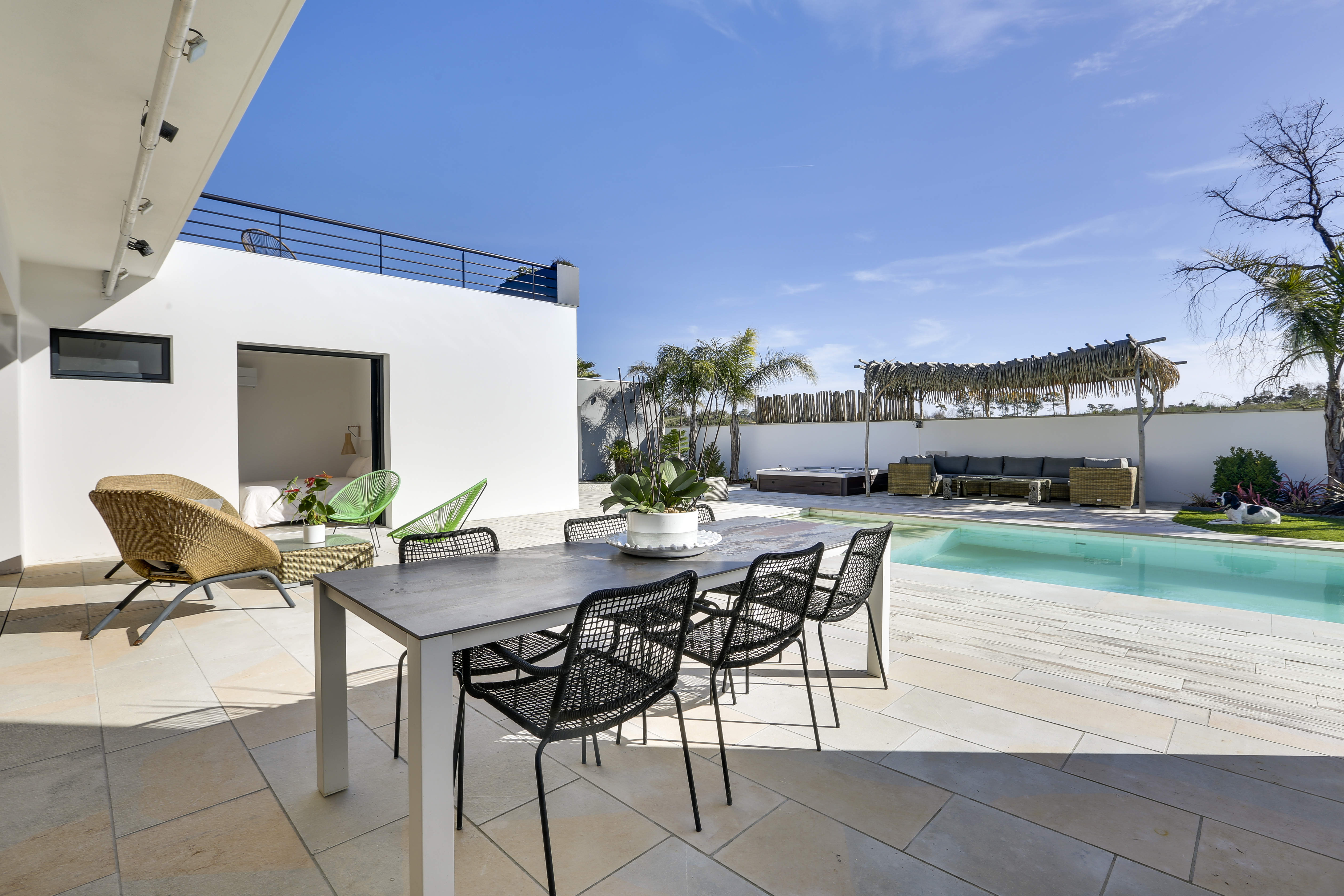 La grande terrasse plein sud vous invite à passer des moments conviviaux autour d’un repas, un coin ombragé à côté de la piscine chauffée ( 11M X 4,5M – profondeur 1,50M ) et du jacuzzi ( 6 places ) vous permettra de profiter pleinement des extérieurs sans vis à vis.