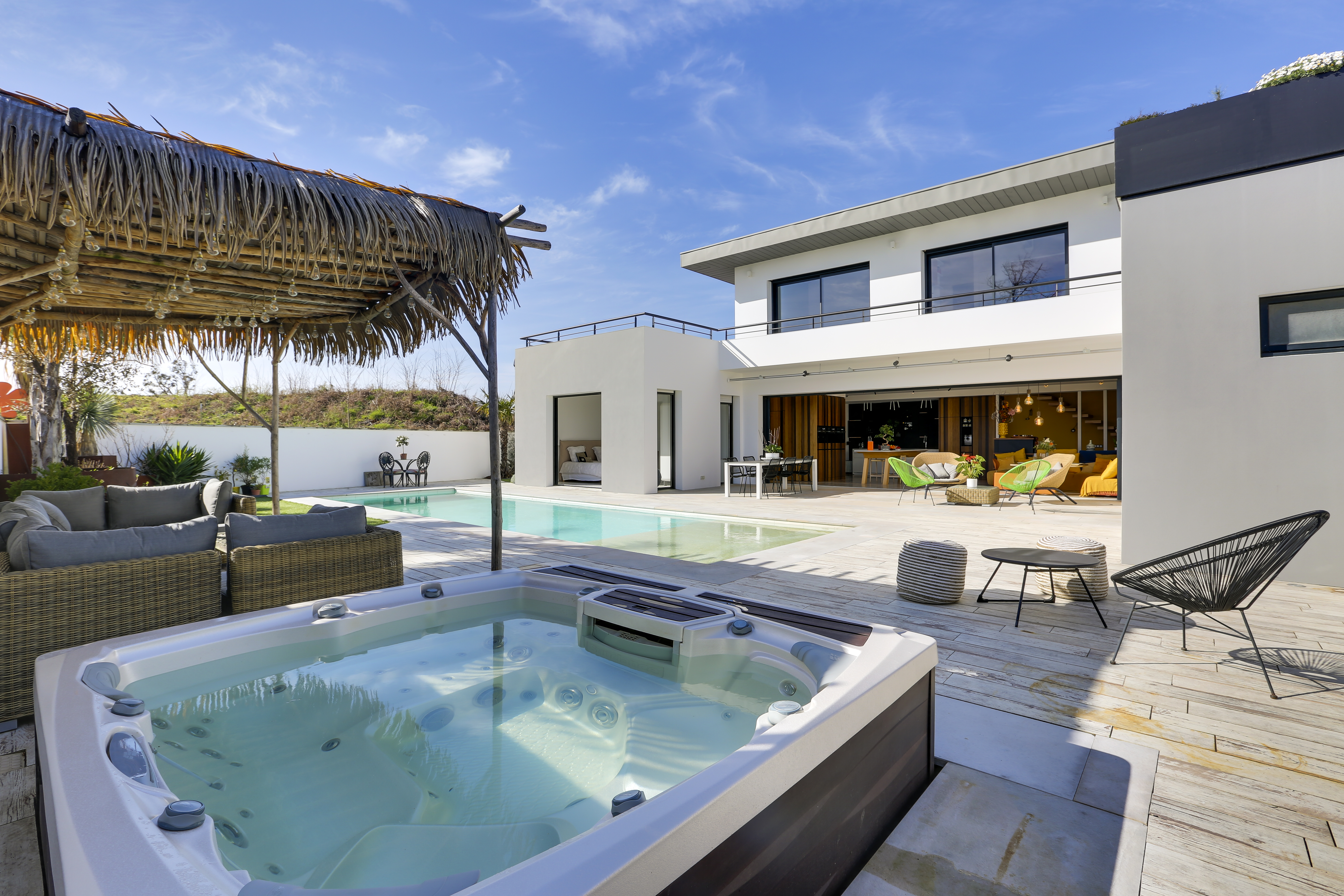 Cette maison lumineuse moderne d’une superficie de 270m2 se situe à moins de 2km des plages d’Anglet, elle offre 4 lumineuses chambres avec chacune leur propre salle de bains.