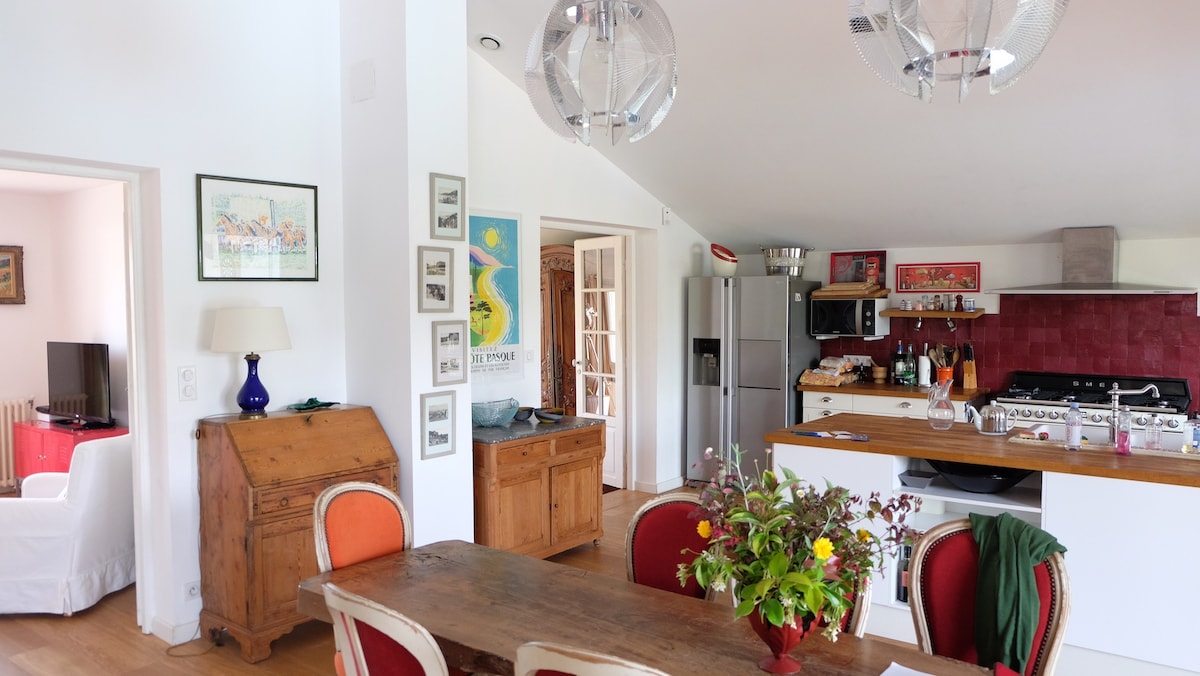 Entièrement restaurée avec soin, elle marie avec raffinement le charme rustique à une décoration contemporaine.